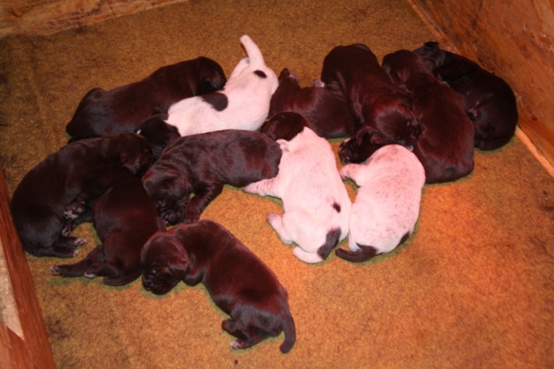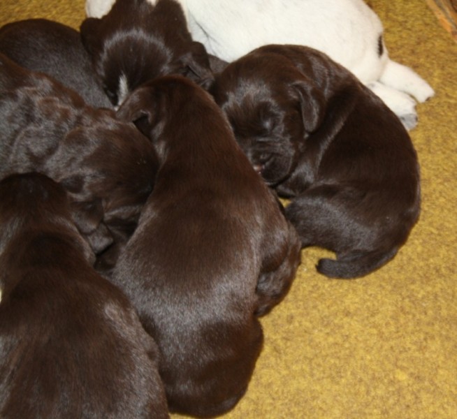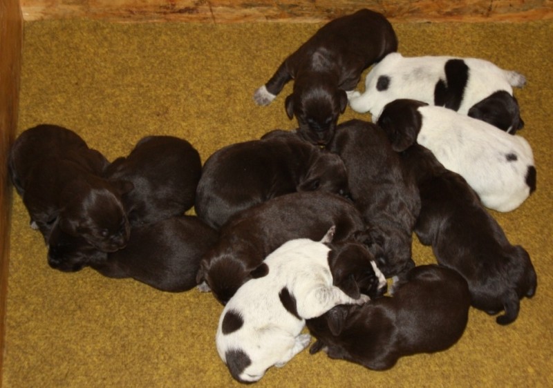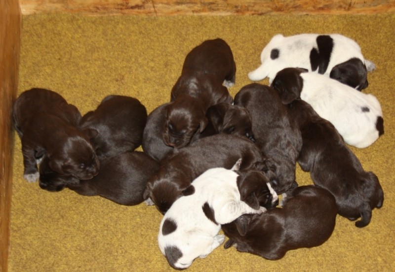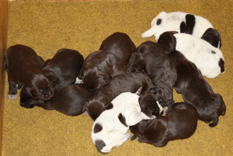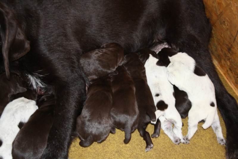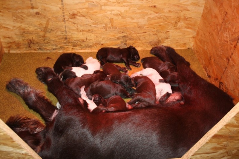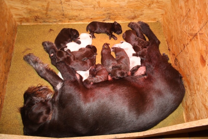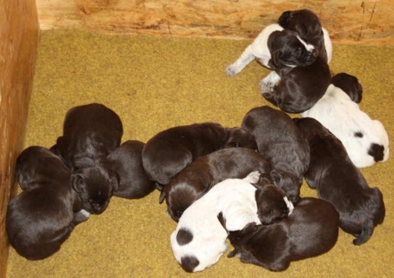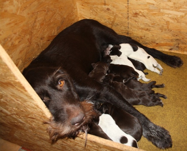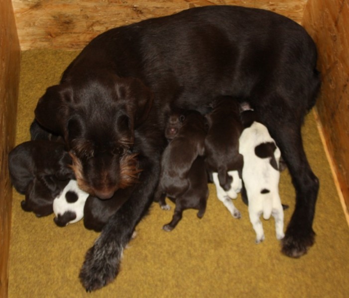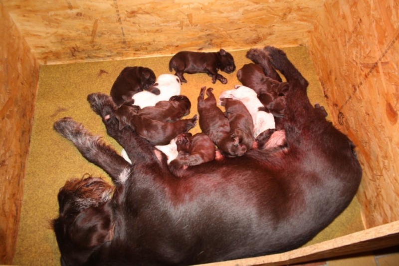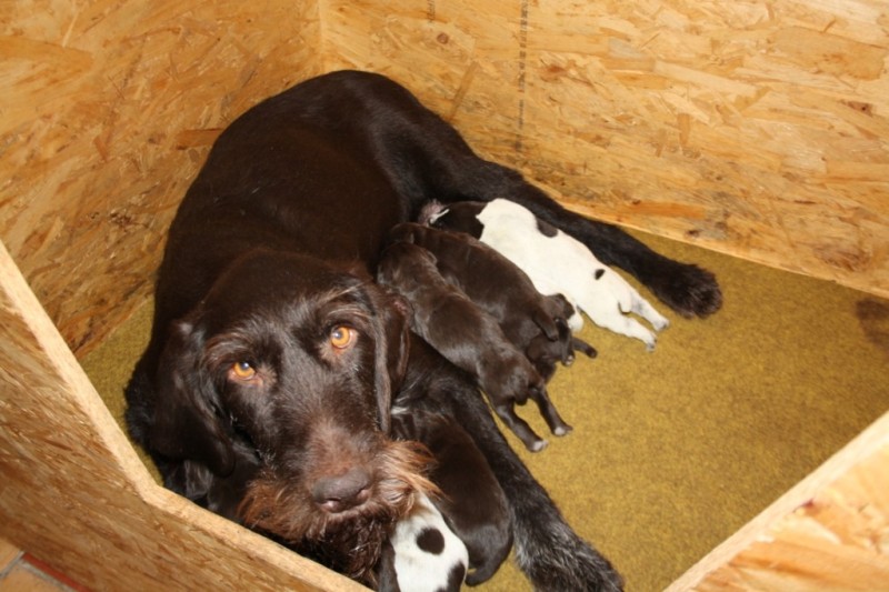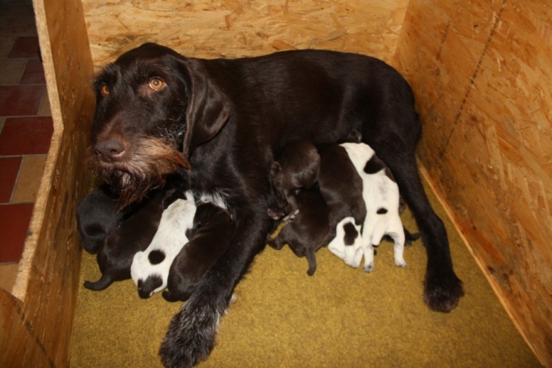 Alle Welpen und auch die Mutter sind bestens drauf. Die Kleinen entwickeln sich gut.