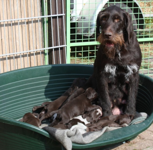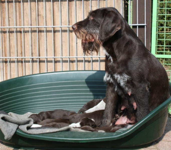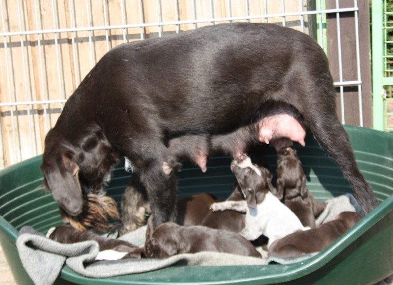 Aica und ihre Welpen sind nun ausgezogen und wohnen wieder im Zwinger.